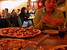 for dinner, julie and i walked down to emma's pizza (kendall square). it took her forever to order, and she ended up going with the make-your-own-pie option (an expensive $20+ large pizza). i debated going large myself, but decided to opt for the small, which at 12" was still a pretty decent size. neither of us could finish and we ended up taking our unfinished slices home. (here's something freaky: check out the names of the couches on this exact day 3 years ago)