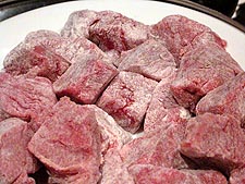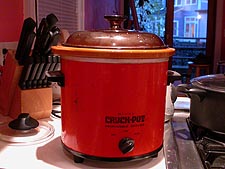around 4pm i started making the michoacan beef. although the recipe didn't specifically ask for a crock pot (just simmer on low heat for 1.5 hours), i figured it'd be easier just to throw all the ingredients into one and let it stew for a few hours. julie arrived around 7pm. the dish (served with a mushroom pilaf) was okay but it seemed rather plain, lacking that certain flair. the nuggets of beef would better be served in some sort of pure soup dish, maybe something hearty with a handful of pasta. the weather was shockingly warm today, 70 degrees, but by nightfall it started raining and the temperature plummeted. julie showed me the rash on her arms that only appear if she runs hot water over them. noticing my pompadour, she said my hair is at that awkward stage where it stands up, becoming an afro.