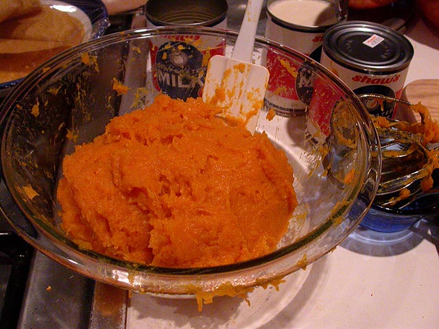 after turning the pumpkin flesh into pulp, i mixed it with some evaporated milk, ground cinammon, ginger, all spice, nutmeg, sugar, and eggs, then into a pair of premade pie crusts, baking in the oven at 345 degrees for an hour and a half. i don't even like pumpkin pie so i'm not sure why i'm making them, other than for sport and what seems like the natural thing to do during autumn. i received word from the client, both the project manager and the company boss, which assumed i'll be working friday and/or this weekend (to get the last project finished), despite the fact that nobody's going to be in the office until monday morning. that left me in an unkind mood, which can only be alleviated by buying something online. dell computer was having a sale on desktop machines, and since i needed to upgrade my 800mhz AMD PC, i ended up spending $300 for a 2.5Ghz celeron. it even comes with a 16" monitor which i don't need at all, but there wasn't any option to not include it in the package. the machine won't arrive until 2 weeks later.
