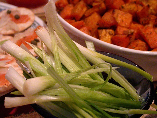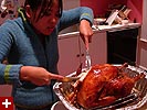 my sister and i exchanged several phone calls, coordinating the details of today's main event. around noontime she brought over the turkey, which had been defrosting and marinating at the cafe the past few days.