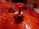 had embedded into the breast meat popped up its red indicator button alerting me to the turkey's readiness. while i was waiting for that to happen, i was cleaning the house a bit, doing some light dusting and vacuuming, moving the dining room table to a more central location. i wasn't sure who was going to make it so i set up the table for 6 people.