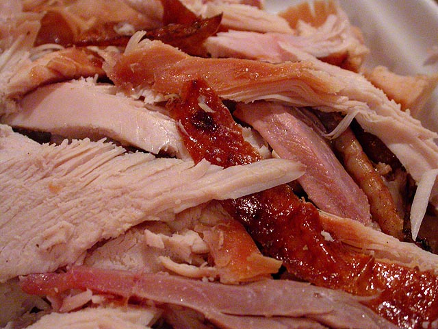 i was already full and felt sleepy (this had nothing to do with the turkey, i always feel sleepy during big meals). i pushed on, until i ate so much i felt like i was going to burst and i was feeling some mild stomach cramps. everyone retired to the living room to watch some smallville, then back to the kitchen to clean up. they ended up bringing must of the stuff back with them, leaving me with some leftover turkey (they even took the turkey carcass, to make soup).
