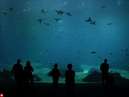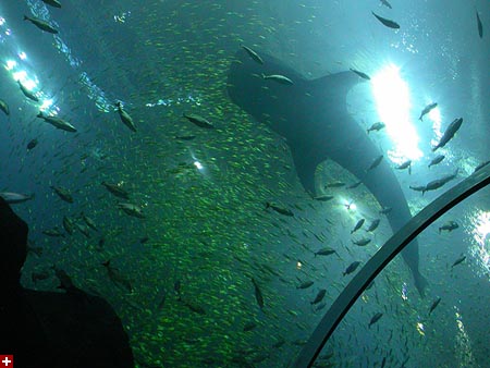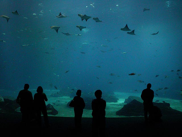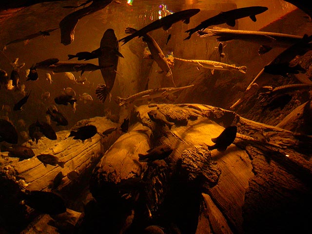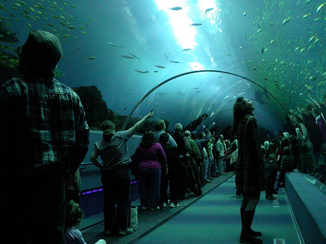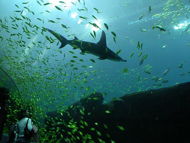 not to say they didn't have some really cool things there. one of them was the underwater glass tunnel with the moving sidewalk. their largest tank, it featured a pair of whale sharks imported from taiwan (the size of school buses, they'd eclipse the surface when they swam over the tunnel), at least two hammerhead sharks, schools of manta rays (like graceful flocks of slow-moving birds), and an assortment of other fish. i actually visited the tunnel twice, i loved it so much.
