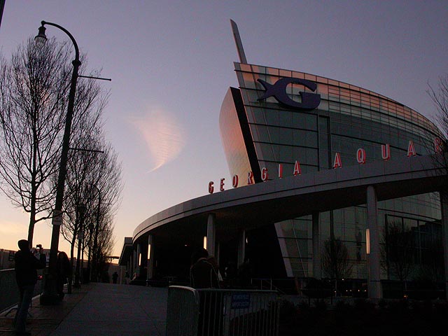advertised as the biggest aquarium in the world, the interior of the new georgia aquarium felt more like a shopping mall than it did a traditional aquarium. exhibits were organized by regions,