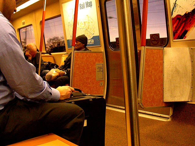 to experience a wide selection of subways: boston, new york city, chicago, tokyo, taipei, bangkok, and now atlanta. atlanta was the only one that had carpet on the trains though. as we made our way to the airport, the sun was setting and the sky put on a beautiful light show of colorful bands.
