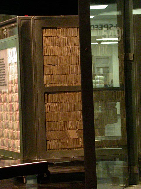 and walked to the federal reserve, about 10 minutes away. there must've been a cold spell the night before because there were a layer of frost on the plants. it took me a while before i could get clearance to go inside the museum; i got the name of our contact person wrong and the guard couldn't find her in their directory. while he was searching the computer, i was trying hard not to stare at his assault rifle leaning against the wall. eventually i did manage to get in.