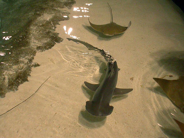another cool thing was the petting pool, where you got to touch rays and sharks who would swim up to your hand if you put it in the water. rays felt like wet skin, but sharks felt like velvet. there was also a "petting" tidal pool but i got yelled at for pinching an anemone.