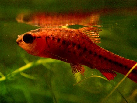when i got back home, i did some work for three different clients, breaking up my remaining hours before nightfall. when i went to the living room to close the blinds, i noticed one of my two remaining cherry barbs was behaving a little weird, hovering near the top of the tank, not swimming away when i tapped on the glass. i could see that it was still alive, but it didn't look very healthy (its scales seem to be bristling). figuring it'd die soon, i got it out of the tank and into a small vase filled with dechlorinated water. it immediately started to swim around a bit; seeing that it wasn't so dead after all, i put it back into the tank, periodically coming by to check up on it. not sure what's happening, maybe it's just old (2+ years now), but it's probably going to die by tomorrow morning. with that i will only have one cherry barb left.