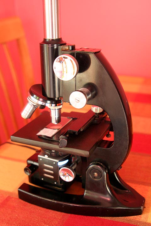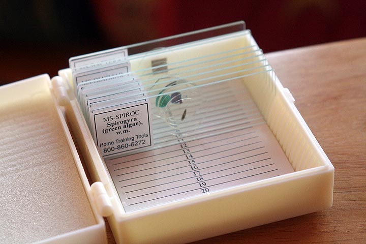 today my set of prepared scientific slides arrived, a microscopic sampling of aquatic life. i got out my microscope and after fumbling with the focus knobs and the light source