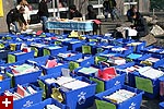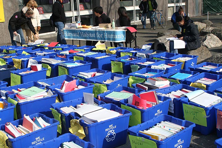 they had booths but at sat at the counter facing the banks of brewing coffee makers. i got the criminal (as opposed to the princess, or the jock, etc. get it?) - scrambled eggs, sausages, home fries, and toast - along with a glass of orange juice ($9 including tip). while i was eating, i saw a baby cockroach crawl across a laminated menu cover; i didn't even bat an eyelash. after breakfast, i walked the 45 minutes back home, cutting across harvard campus, where there was a used textbook sale. i took a brief look but didn't see anything worth buying.