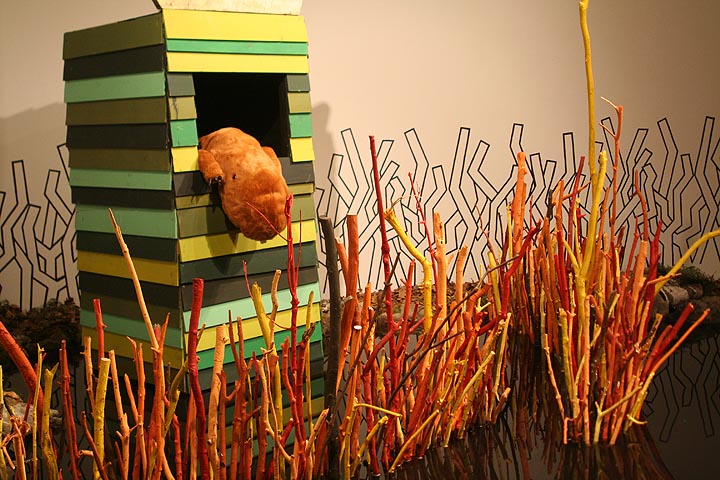 i went down to the mass college of arts near longwood for the beaver no seikatsu exhibit by shintaro miyake. i wasn't quite sure what it was, something about a performance artist who dresses up as a beaver and builds a den.