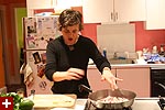 when i came back to the house everyone had left but the place smelled like a bread shop and my mother had tidied up my place as well. i thought it was weird that my brita water pitcher was sitting outside, until i looked inside the fridge to see a big cake sitting on one of the shelves. julie came over in the evening to make dinner, some sort of peanut curry with shrimps. the jumbo shrimps she used ended up being slightly undercooked and we both had to microwave our meal.