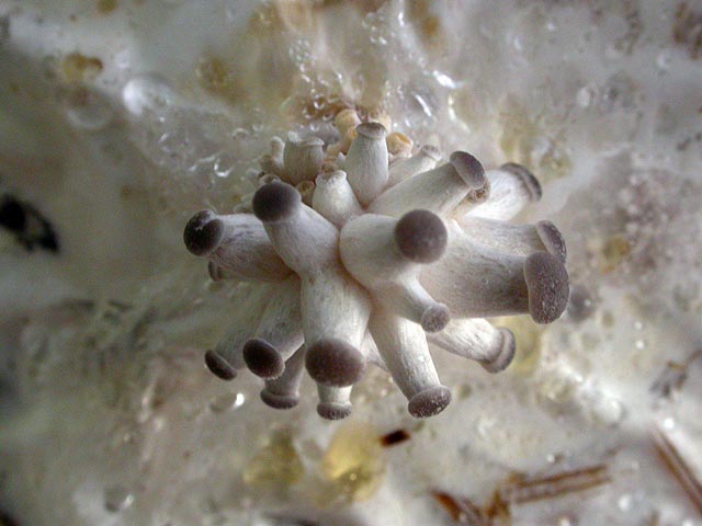 what's wrong with my mushrooms? last week i was so happy to see all these nodules sprouting out, but this week all the tiny mushrooms seem to be shriveling up. i don't know if it's too much humidity or not enough. i also rotated the bag by 90 degrees, so both sides could have room to grow outwards - maybe it didn't like that. the bigger mushrooms are now growing vertical like columns instead of horizontal like shelves. growing mushrooms is not as easy as i originally thought!