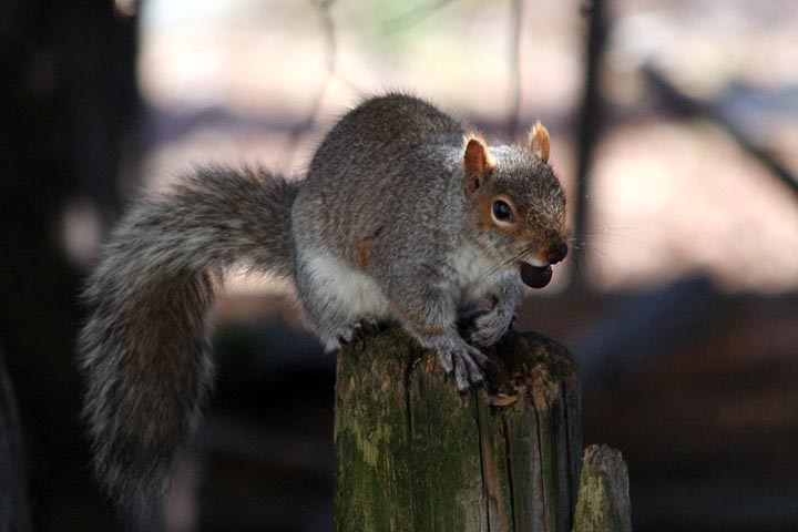and came back outside. the skunk was gone however. i knew a skunk or two live in my neighborhood, and i've even had one walk up to me in the middle of the night (skunk's have poor eyesight, it probably just didn't see me). the weird was skunks are noctural, so what's a skunk doing running around in the middle of the day? maybe the warm weather stirred it into activity, or maybe it had rabies. i did however get some squirrel photos, which are a dime a dozen.