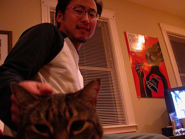 in the evening i walked over to jesse' place in winter hills, where she was making sweet potato quiche. i brought my playstation (so very junior high) and we played a few rounds after dinner, with jesse fluttering in and out of sleep. once i got back home, i stayed up late enough to watch battlestar galactica before falling asleep on the couch.
