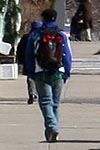 i didn't get in touch with julie until 1:30, then i had to wait another hour because she was baking a pumpkin cake. while walking down to davis square, i noticed somebody who looked familiar coming down the street. it wasn't until i passed him did i realize who it was: my friendly neighborhood burglar! he was wearing the exact same outfit, sporting a red backpack this time around (is he a student?). i wanted to chase after him and get a really good photo but once again, i just managed to take one from a distance. i stopped by a subway to get some lunch (a small steak and cheese sub) before showing up at julie's place. when it was all said and done, we didn't actually leave until almost 3pm.