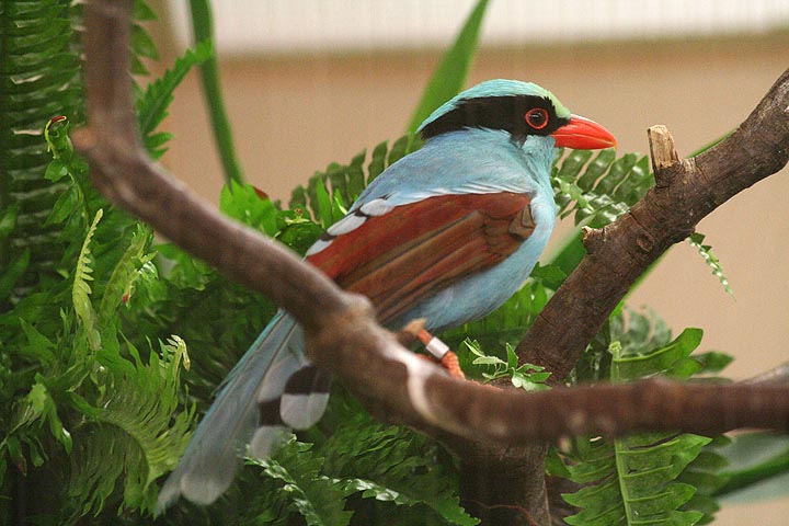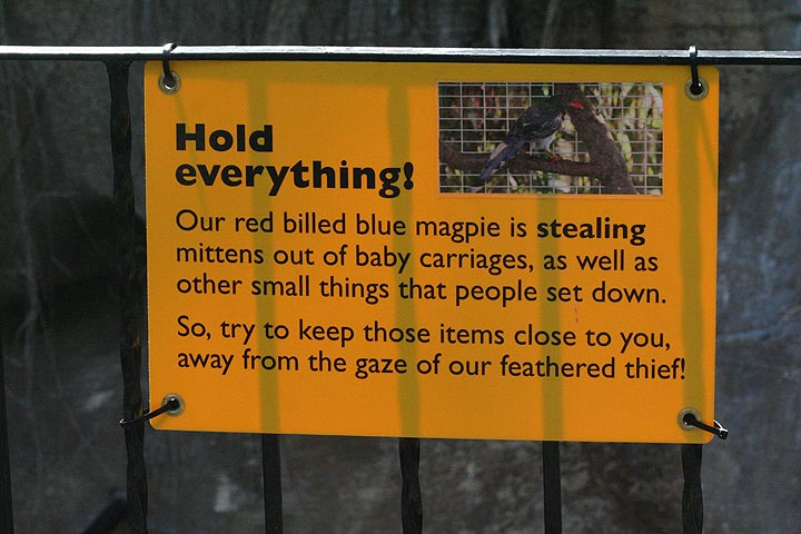 when i came into the outdoor birdhouse enclosure (the flight exhibit), a blue magpie swooped down as i came in. i thought this was strange until i saw the sign: apparently this particular magpie had been stealing things from people, and was probably swooping down to see if i had anything it could take. i watched as it did this for everyone who came into the enclosure. in the pool i saw mandarin ducks, one of the most beautiful ducks in the world. the first and only time i've seen them in the wild was back in tokyo, in the shinjuku park, where i spotted a few hiding underneath some shrubbery in a pond.