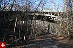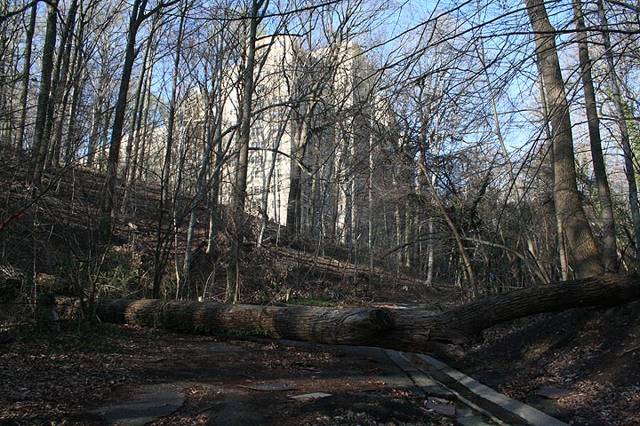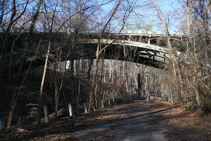 apart from the poor road condition there were a few fallen trees down on the road as well. i thought about turning back but it'd mean a longer walk, and according to maps at least, if i kept on going i'd eventually get to the zoo. the area seemed abandoned, and i kept my eyes opened for homeless squatters. at one point i walked underneath a large archway bridge.