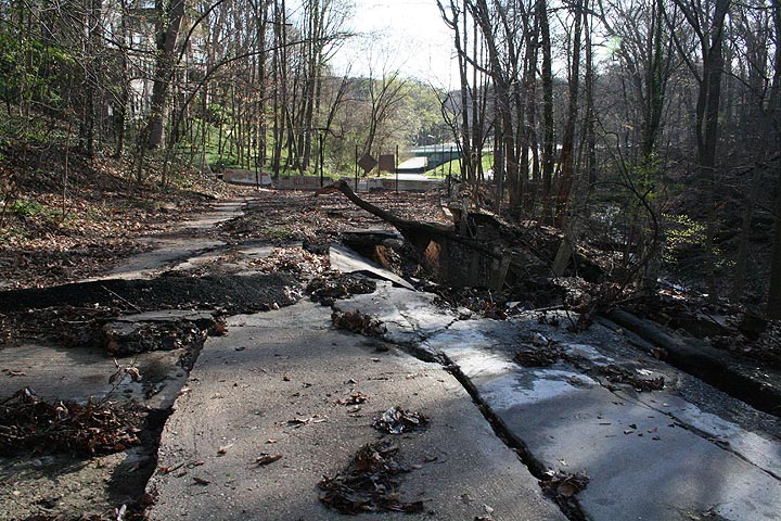 nearby was a pool of water with the eerie sounds of spring peppers calling in unison. i could see buildings up on the hills, so i knew at least civilization was nearby. i continued walking for an unusually long time, onto a woodsy trail, before crawling through another chain-linked fence to arrive at some quiet suburb. where the hell am i? it was only later that i discovered i'd just traversed an abandoned road. apparently there's some controversy over klingle road between those who want to re-open the road for traffic and those who want to make it into a pedestrian-only path.