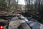 i was on klinge for a little bit the path was blocked by a chain-linked fence and concrete barricades. i didn't know what it meant, maybe just no car traffic, so i hopped over the fence and continued. further along the road i could see why they closed it: large chunks had been washed away, sunken into the ground, left in disrepair.