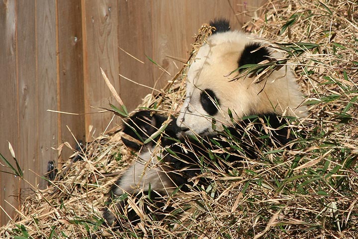 most of the early visitors like myself made a beeline to the panda enclosure, where the pandas were feeding on their favorite (and only) food, bamboo. i saw the baby panda tai shan, no longer so small, but still about the size of a large chow chow dog. he was with his mother, playing with his food instead of eating it. next i went to the small mammal house, where they had it opened early as a treat. the golden lion tamarins and the giant elephant shrew were two of my favorites.