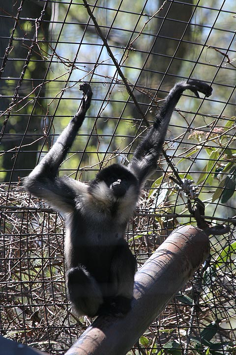 despite my awful track record with gibbons (a naughty gibbon stole my glasses in saigon), i still love these long-armed lesser apes. not as much as i love langurs though, which are my favorite simians. i feel blessed to have seen gibbons out in the wild, in their native habit, when i visited the khao yai national park in thailand last year. i was surprised to find two different species of gibbons sharing the same large enclosure. later i saw them conspiring, on the ground, seemingly talking with the gibbons in the other cage.