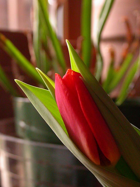 the tulips are sprouting and now one has even flowered...except they're all growing sideways because i don't get enough sunlight in my kitchen. at least they're safe from marauding cantabrigian squirrels. i had two krispy kreme donuts for breakfast and two hot dogs for lunch. after the red sox game i heated up a toaster oven pizza (so sad, i know) and watched an episode of hustle on AMC. throughout the day i was working on my washington DC weblog entries.