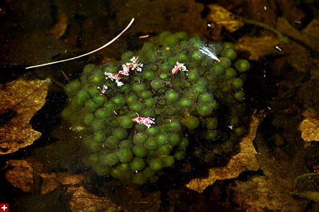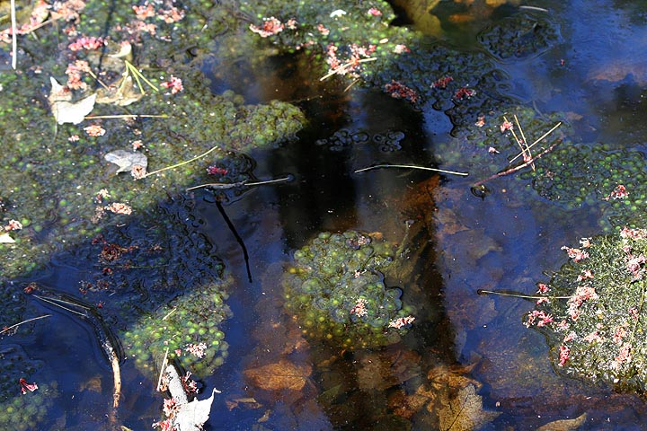 coming into the bog i noticed a large mass of frog eggs floating in the water. since i brought my rubber boots all the way out here it'd be a shame