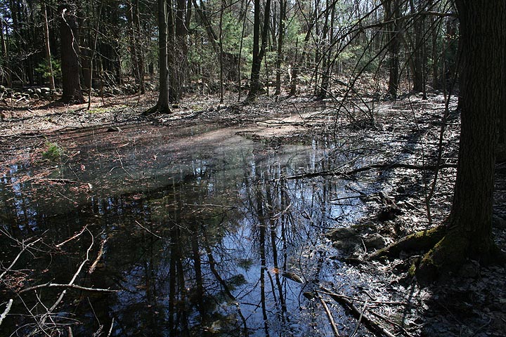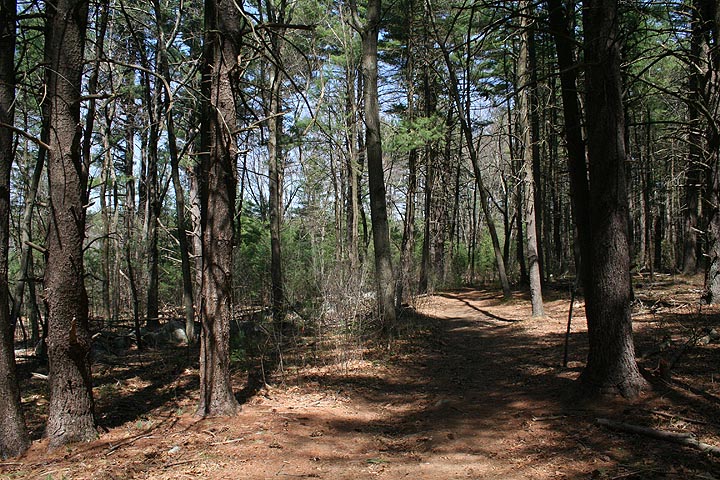 it all started last sunday: on my way to oxbow in harvard i noticed off the side of the road a sign for guggins brook conservation land in acton. i didn't have time to visit but i went online and did some research. turns out the town of acton has many conservation lands, many with trails and printable pdf maps. it's sort of a hidden gem because in all the nature books i've read none of them ever mention acton. a check of the weather forecast said today would be the nicest day of the week and just so happened i didn't have very much work today so i decided to take it off and going naturing instead. i woke up this morning a little sore, side effect of yesterday's run, but nothing too bad. i printed out maps to 6 different locations i wanted to visit. i ate some cereal for breakfast and then headed out for route 2A, a familiar stomping ground.