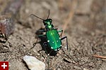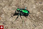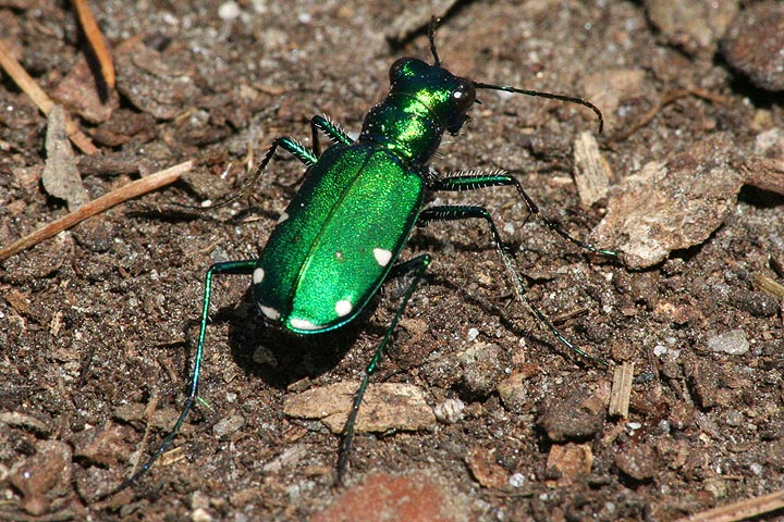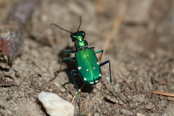 a flash of brilliant emerald green confirmed my suspicions: tiger beetles are out! i spent the next 30 minutes trying to get a good photo of these elusive beetles. everytime i got close, they'd fly off a few feet ahead of me. i managed to work in the telephoto lens with the macro filter attachment,