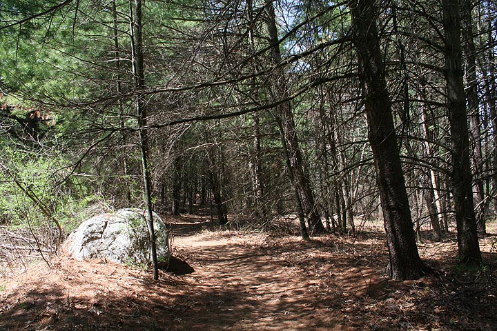 my next destination was nagog hill. according to the trail map there's a vernal pool and a path leads to nagog pond. a horse riding school is situated right next to the parking lot so the first few hundred yards into the forest smelled like horse manure.
