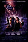 cyborg 2 (1993): one of angelina jolie's first starring role, you can see she's not yet polished and still has some baby fat left in her cheeks. the film itself is pretty crappy and has straight-to-video written all over it. nevertheless, jack palance has a supporting role as a mysterious "man inside the box" mercy (think max headroom) who helps cyborg cash (jolie) and sparring partner colt (elias koteas) escape from the corporate compound where they intend to transform cash into a sex bomb (literally). the finale is jaw-droppingly surreal: mercy turns out to be a cyborg himself (look! he wears a leg brace! CYBORG) and has a no-holds-barred shootout with a gang of bad guys all the while dressed in a cosby sweater, i kid you not.