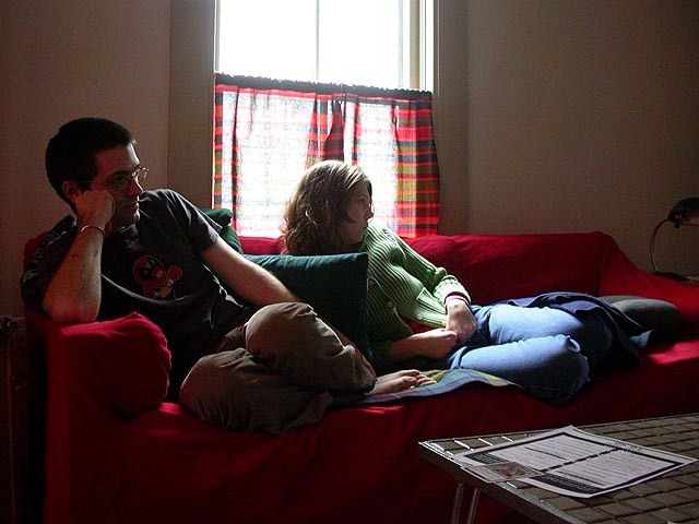 there were three other movies left to screen: a fish called wanda, zero effect, and the iron giant - but after 18 hours (actually just 17, we were ahead of schedule) i was ready to split. not that i couldn't stay up 24 hours watching movies, but the last three films didn't really interest me, and i didn't want to be sleeping all of sunday because i'd stayed up all of saturday, so i left. by then it was just elias and dan left.