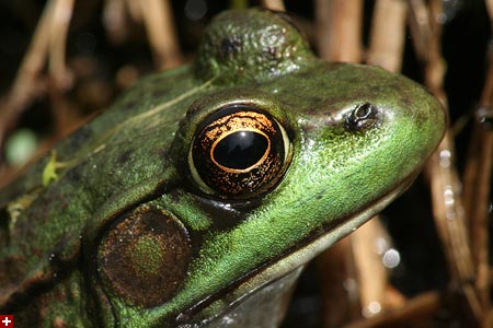 there were a few early season dragonflies but none of them were close enough for me to get a good look. red-winged blackbirds staked out territories by the pond and there were some green frogs in the marsh. one frog in particular caught my attention; unlike its brethren, it wasn't skittish when i walked by and kept its ground,