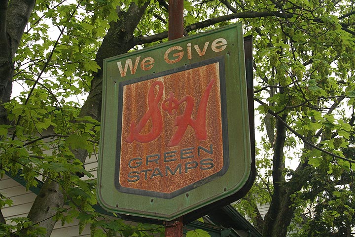 returning home i took my time, enjoying the overcasted weather with only a slight drizzle, not the cold downpours we've been experiencing the past few days. the rain had washed off the petals on some of the more delicate flowering trees, carpets of pink and white lining the sidewalks. i took a photo of an old-timey sign: "we give S&H green stamps". i came home and did some research: vendors (like in this case, an old gas station) used to give out green stamps to their customers (an attempt to foster customer loyalty); once the customers collect enough, they can trade in the stamps for products (featured in special green stamps catalogs), like a new toaster. first started in 1896, these stamps reached their height in the 60's, only to all but disappear in the 70's (although they still exist today online).