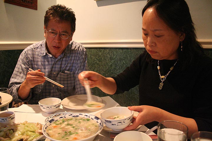in the early evening my parents and sister came over and we had dinner at zoe's. there was no mention of mother's day with the exception of my mother saying she bought a new purse for herself. the place wasn't very crowded; most of the people waiting downstairs were there to pick up their chinese takeout. back at my place i showed my parents a possible route i'd be taking through china. my father helped me fix my shower head, disassembling the unit and scrubbing out the inside with vinegar - apparently i have hard water and there were mineral deposits clogging up the outflow.