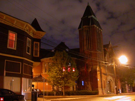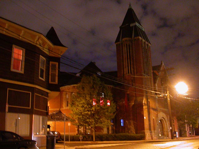in the early evening my mother came by with a delivery of raw chicken wings. i had some for dinner while watching the game. my neighbors franz and jen were throwing a party (franz's birthday) and she invited me yesterday but i decided not to go. instead, i waited later in the evening and went to a different party, hosted by laura. titled "marco polo," it was a sending away party (she's going to southwestern china for a month next weekend) with an unabashed asian theme. laura lives in a converted church in union square (i never knew there were apartments inside) and greeted me at the door wearing a red chipao. inside the place was decorated with paper lanterns and a projector was running a show, mashing itune's screen saver, chinese movies, and different songs (her roommate jeffrey was a former video deejay). chinese snacks included dried prunes (everyone who tried it ended up spitting it out), haw rollups, white rabbit candy, and sunflower seeds. later jeffrey returned from chinatown with appetizers from china pearl. i was of course the first guest there and had some quiet time to chat with laura and her friend claire (also going with laura to china, as well as her parents). i had some other interesting conversations: cindy (laura's childhood friend and fellow tuftonia) and i chatted about being able to speaking taiwanese but not mandarin, dale (lisa's boyfriend) told us harrowing tales of traveling to machu picchu in 1976, and molly and i talked about gardening. i left around midnight, making my way through the front door where all the "too cool for school" kids were out smoking on the front steps. i wiped the rain from my seat and motorcycled back home. my neighbors' party was still going on.