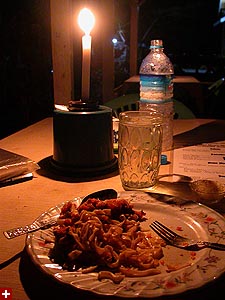 for some reason there are several italian restaurants in nyaungshwe, probably to cater to their foreign clientele (i hardly saw any foreigners, there were just 4 other people staying at my hotel and i knew them all after we had breakfast together). i had pizza for lunch (i was the only customer) and pasta for dinner (once again, there was nobody else but me). they even grew their own italian herbs (like basil) but they weren't doing too well in the dry heat. the romantic evening ambience of the candlelight was courtesy of another blackout. i ate outside while one of the waiters strummed a guitar (the music wasn't for me, they were just bored).