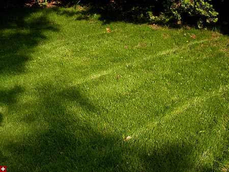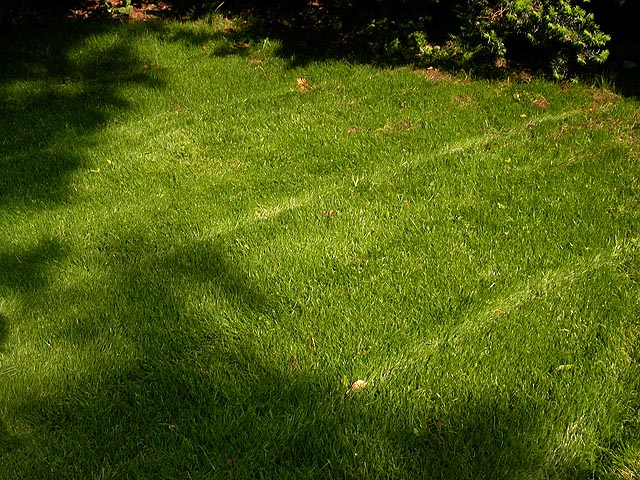 after getting some lunch at the cafe my father and i went back to my parents' place to work on the garden. having not been back in a few weeks, i noticed the recently seeded section of the lawn had already grown out. i also saw the mcmansion one of the neighbors was building (hard to miss, even without the noisy jamaican carpenters working on a saturday), a 3 story monstrosity that looked more like a ginormous gazebo than a quaint suburban home. we made an inventory of what we needed and went to the watertown home depot. we were looking for 4x4" blanks to use for the garden borders, but they were all pressure-treated. instead we left with 11 bags of cedar mulch to dress up the front edgings of the house. it started raining when we left but soon cleared up when we got home.