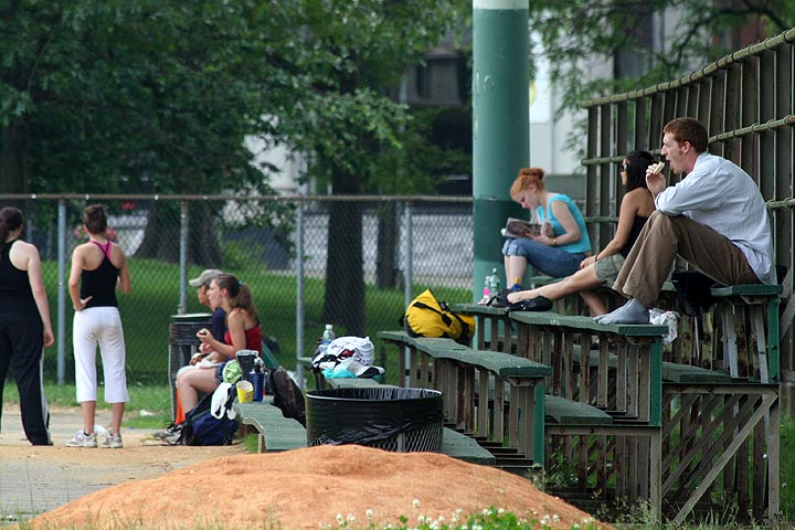 afterwards we walked to the common; while james went back to work, i walked around in the sweatering heat (90+ degrees), trying to find things to take photos of. i watched a softball game a litle bit before the heat got to me and i went back to chinatown to retrieve my motorcycle.