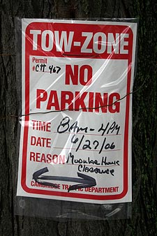 with enough boxes piled up in my bedroom that there was hardly any room to move, i started the work week. there was just enough clearance that i could still see the television, tuned in to the afternoon red sox game against the phillies. the game went into extra innings but was worth the wait: ortiz once again knocked in the game ending run. the rest of the day i did a little code work and made social plans for the week via instant messaging and e-mails. i went out to move the motorcycle after seeing the signs for a "modular house clearance." just when you think life is getting boring, somebody decides to bring a modular house into the neighborhood. i also went across the street to get some groceries (nectarine sale, feel the excitement). in the evening my chinese astrophysics researcher (formerly known as my chinese graduate student) came back home after his first day on the job.