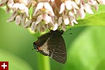 i left the northern entrance and returned to the southern end. nothing new with the exception of more amberwings. on a map i noticed there was a pond nearby so i walked down there and back. i spotted a monarch butterfly caterpillar on a milkweed; i almost didn't see it because it was such a neat eater and didn't leave any telltale bit marks. i haven't seen these caterpillars since 2003, and even now it seems slightly early in the season. if i had a jar i would've taken it to raise at home but left it alone instead.