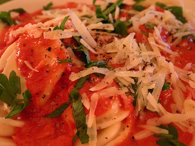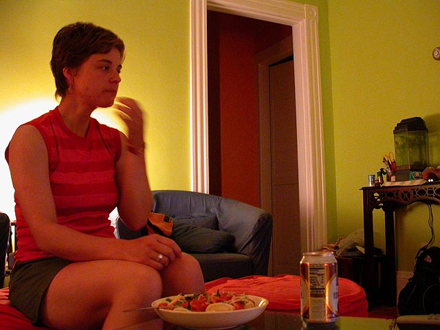 julie came over for the last tuesday night dinner of the summer. i was making vodka sauce ravioli, we ate while watching the all-stars game in the relative comfort of the air-conditioned living room. the NL was leading when julie left, but the AL pulled ahead for the lead in the final inning, giving the red sox home field advantage when we advance to the world series in october. personally i think it's a stupid rule: the team with the most number of wins should get home field advantage. i'll be sure to change it when i become the commissioner of baseball.