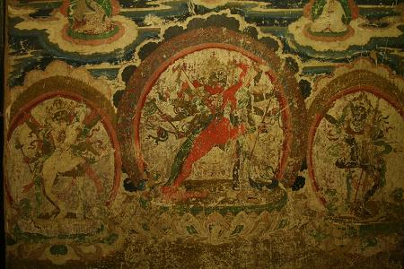 i got dropped off in front of this temple-museum complex. the admission used to be RMB$2 but now it's increased to RMB$30. reluctantly i paid. there really wasn't anything inside other than a few ancient chinese structures (all recently painted, you can still smell the fumes) and some heavily damaged murals. it started raining and i hung out in the temple with the large golden buddha, waiting for the rain to stop.
