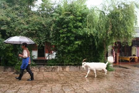 when the rain finally stopped, the naxi man and i took the shuttle bus back to lijiang old town. when it came time to say good bye, i stuck out my hand for a handshake but he embraced me in an awkward hug.