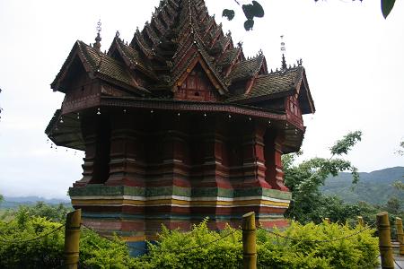 this morning after packing up all my stuff i decided to take a minibus to jingzen (about 19km away) to see the bajiaoting, AKA the octagonal pagoda. this involved flagging down a menghai-mengzhe minivan from the street corner, which i managed to do effortlessly (like a pro). the ride was RMB$5 and i got dropped off only after i reminded the driver, "i want to go see the bajiaoting" (although going to mengzhe wouldn't have been so bad either, i remember seeing a temple there as well).