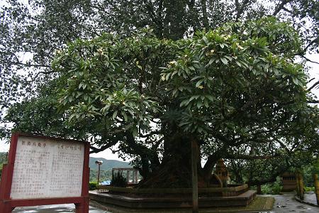 bajiaoting is nothing special, anything original was destroyed in the cultural revolution (i think, i'm not sure), and this new one has the utilitarian look of modern day concrete. the only saving grace was it stopped raining finally (it was pouring this morning) and there was a massive flowering plumeria tree filling the air with its fragrance.