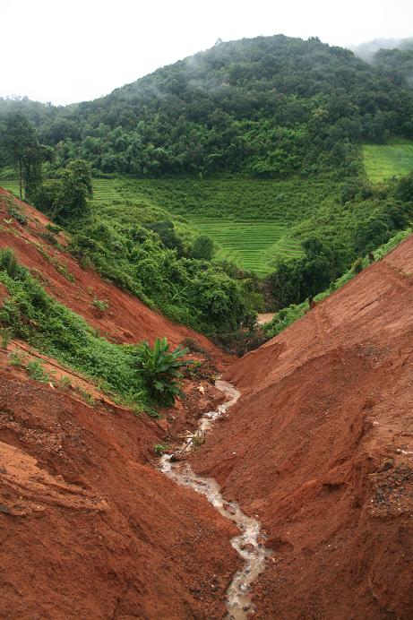i still had pains in my feet and legs but they were in better shape than yesterday. it took me 10 hours to wake 15 miles, with the occasional stops to smell the roses or the stop to rest my feet. i was pretty sure there wouldn't be a repeat performance of yesterday's long march. i figured i'd get as far as the nearest village, and see if i could hire somebody to drive me into town on a motorcycle. it's a dangerous proposition on these muddy mountain roads, but there was no way i could walk anymore than a few more miles.