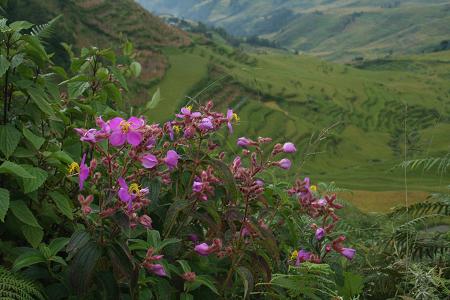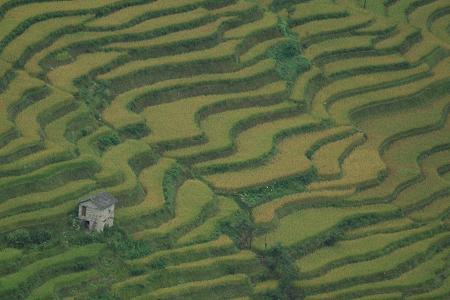 i met my driver this morning at 7am as he took me on a tour of terraced rice paddies. clouds covered the mountain top in the form of a thick fog, but soon disappeared with the warming sun. we passed a few paddies, then some more, then suddenly i was blown away my the sheer magnitude of terracing. it almost seems like a naturally occuring phenomenon, undulating bands of colors across the mountain landscape, until you real it's all man-made: no machines, some water buffaloes, but mostly just basic human muscle power, terraforming the landscape for hundreds of years. it isn't exactly rice either: it's probably some sort of oat. the driver told me that they there's so much of it at this point, the government basically pays the local natives to maintain the terraces since the country has no more need for the product.