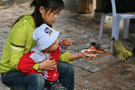 the kunming zoo aviary is a paradise for bird lovers - or if you have a telephoto lens and want to put it to good use. birds of all colors and sizes were flying around, visiting feeders, washing themselves in bamboo baths, collecting twigs and leaves to make nests, your basic bird stuff. i stayed for an hour but i could've spent the whole day there, just watching the birds.